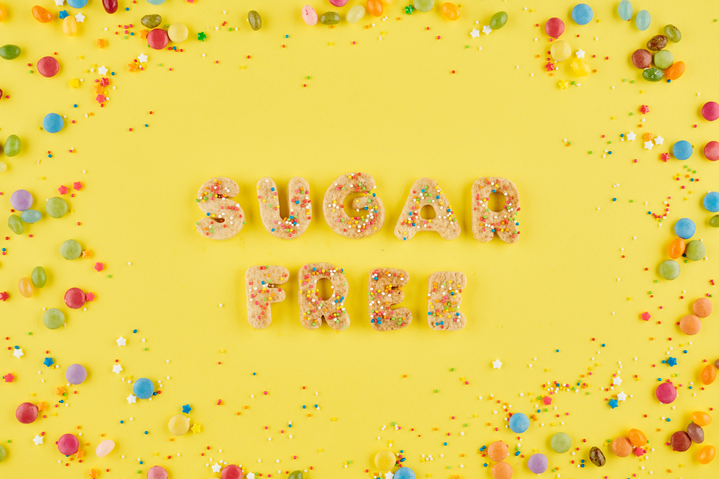 Volledig suikervrij assortiment met chocolade, wafeltjes, cake, confituur en snoepjes.